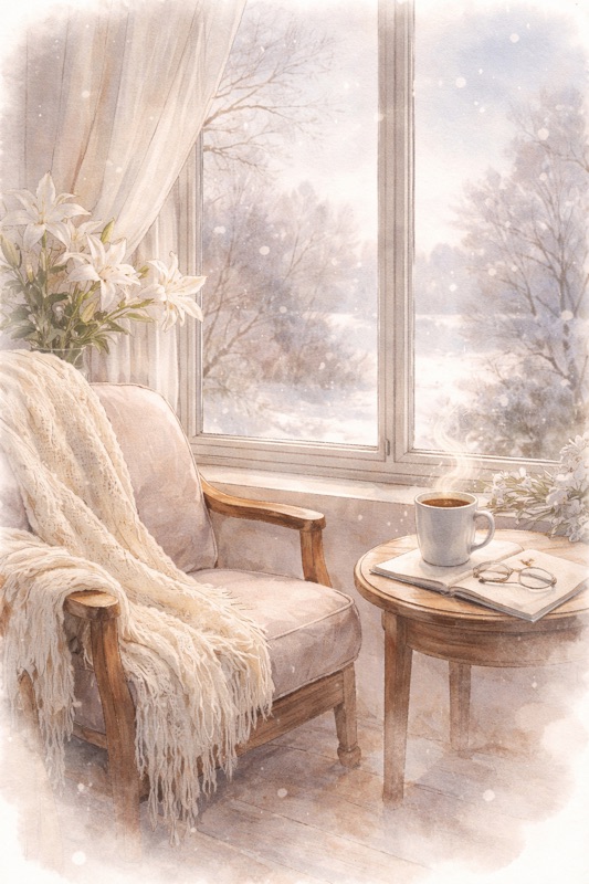 But by 3 p.m., I was bundled back in my pajamas and cozy socks, curled into my favorite chair by the window. Outside, the sky was a pale winter gray, the light soft and heavy, as if everything was exhaling.